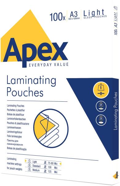 Laminált fólia, A3, 80 mikron, 100 db / készlet, APEX A laminált fólia védi és javítja a dokumentumok megjelenését. Alkalmi használat.