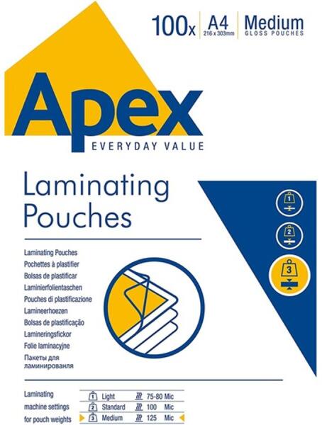 APEX Medium A4 125mic 100db-os fényes meleglamináló fólia (6003501) - tintasziget
