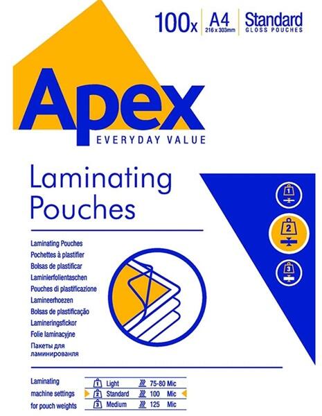 APEX Standard A4 100mic 100db-os fényes meleglamináló fólia (6003301) - officedepot