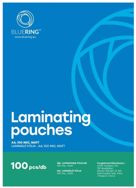 Bluering Lamináló fólia A4, 100 micron matt 100 db/doboz, Bluering® (LAMMA4MA100MIC) teljes leírás »