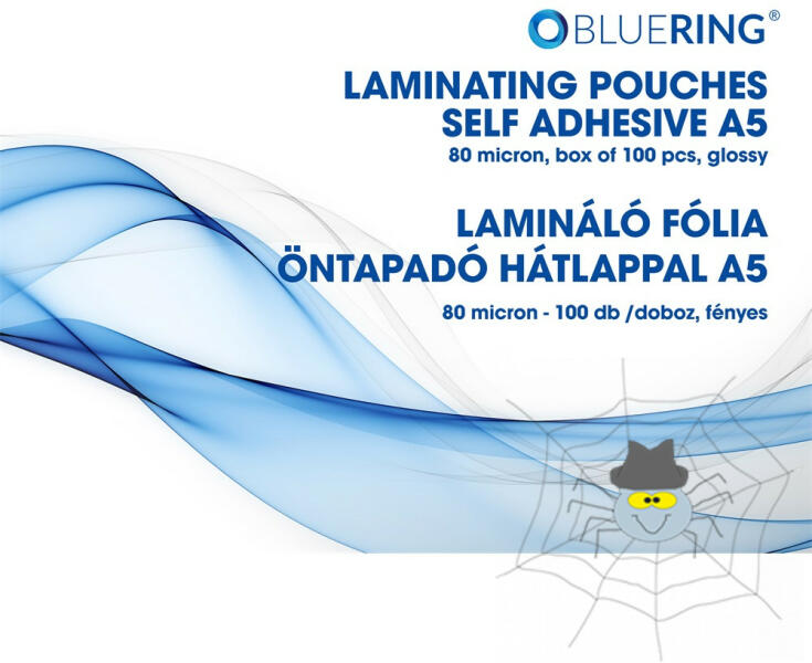 Bluering Lamináló fólia A5, 80 micron öntapadó hátlappal 100 db/doboz, Bluering®, - spidershop