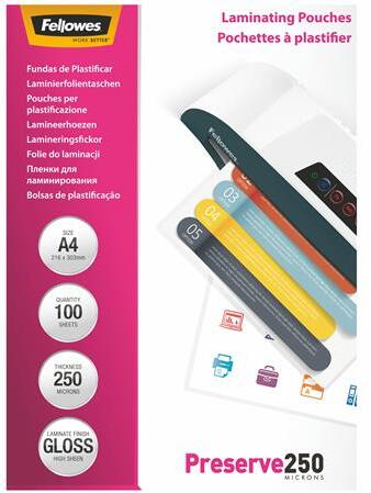 Fellowes 250 mikron A4 fényes lamináló fólia (100 db / csomag) (5401802) (5401802)