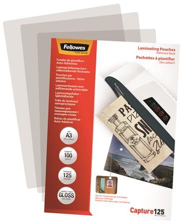 Fellowes A3 fényes öntapadó meleglamináló fólia 125 mikron 100 db (IFW53290)