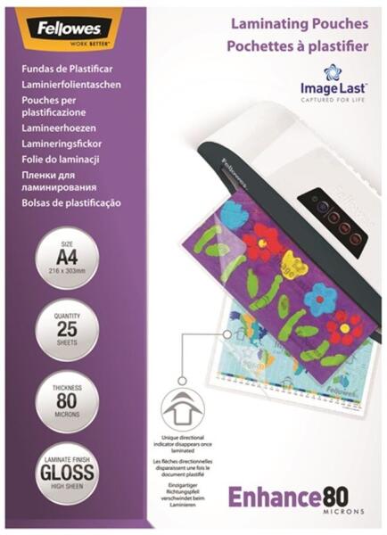 Fellowes A4 80 mikron, 25 db/csomag fényes lamináló fólia (5396205) - tintasziget