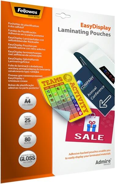 Fellowes A4 80mic öntapadó hátlapos 25db-os fényes lamináló fólia (5601703) - bestbyte