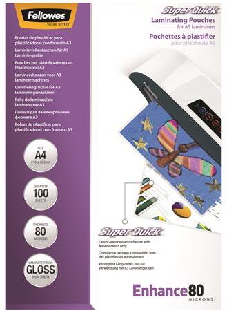 Fellowes A4 fényes SuperQuick meleglamináló fólia 80 mikron 100 db (IFW54400)