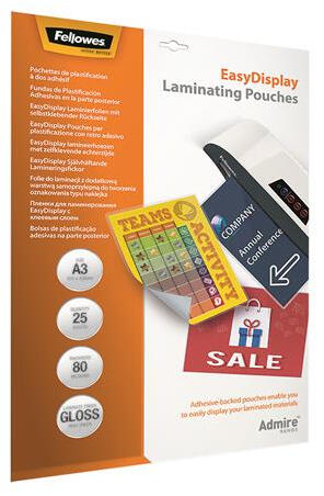 Fellowes "Admire EasyDisplay" fényes meleglamináló fólia, A3, 80 mikron, 25 db (5601803)