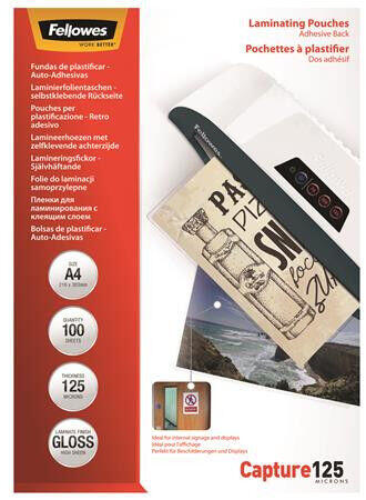 Fellowes Capture125 Öntapadó Lamináló Fólia - A4, 125 mikron, 100 db