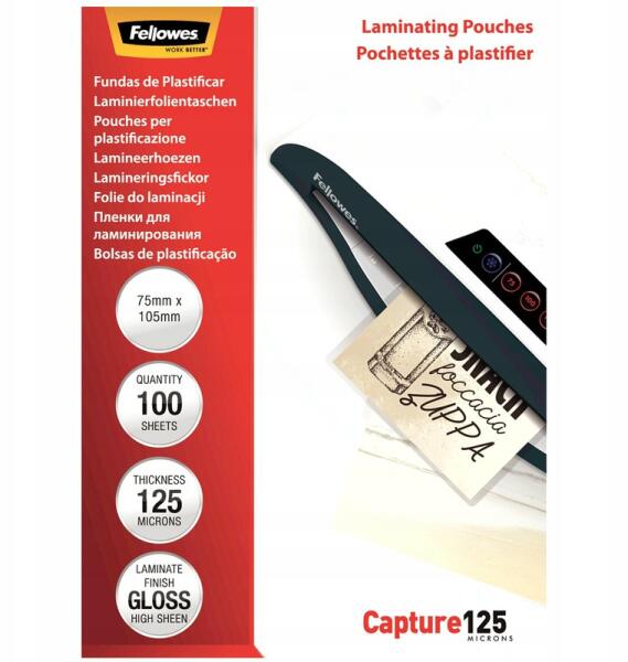 Fellowes lamináló fólia 75x105mm/125m fényes (100 db) (5306901)