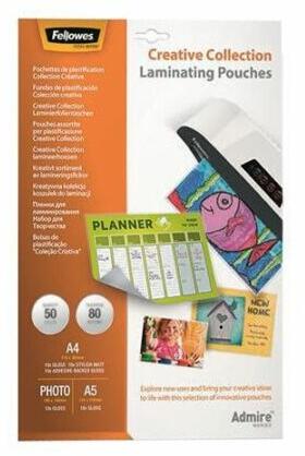 Fellowes Lamináló fólia, 80 mikron, 5 klf. méretben 5x10 db/doboz, Admire Creativ Fellowes® (5602301) - tintasziget