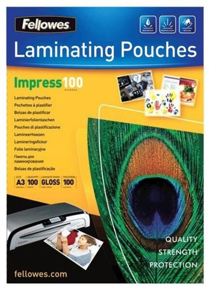 Fellowes Lamináló fólia, A3, 100 mikron, fényes, 100 db/doboz, Fellowes® (5351205) - web24