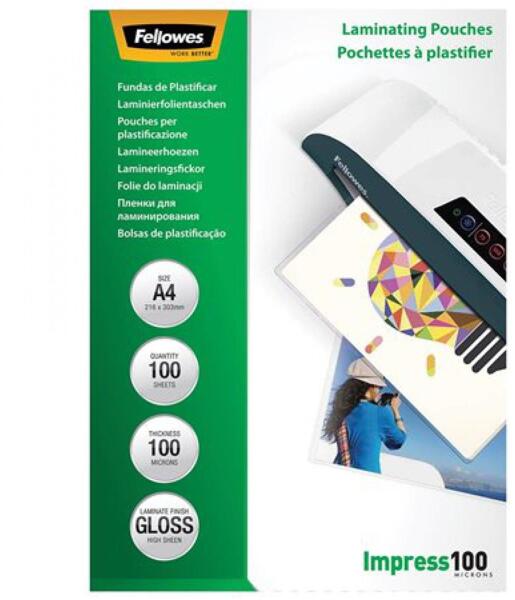 Fellowes Lamináló fólia, A4, 100 mikron, fényes, 100 db/doboz, Fellowes® (5351111) - web24