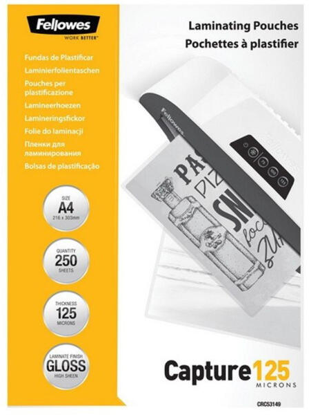 Fellowes Lamináló fólia, A4, 125 mikron, fényes, FELLOWES, 250 db/csomag (5314903) - cartridge