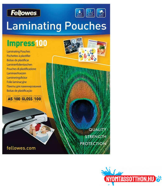Fellowes Lamináló fólia, A5, 100 mikron, fényes, 100 db/doboz, (5351002) - nyomtassotthon