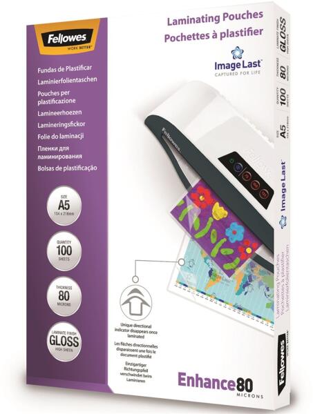Fellowes Lamináló fólia, A5, 80 mikron, fényes, 100 db/doboz, Fellowes® (5306002) - web24
