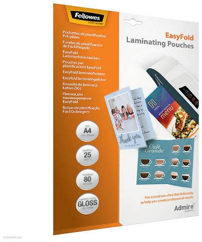 Fellowes Lamináló fólia Admire EasyFold fényes, előrehajtott, A/4, 80 mikron 25 db/CSM (5601901)