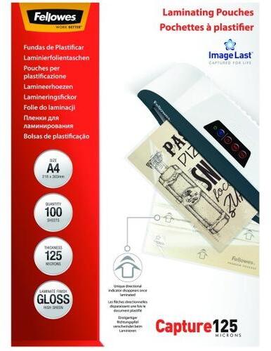 Fellowes Lamináló fólia FELLOWES A/4 125 mikron fényes 100/csom (5307407) - robbitairodaszer