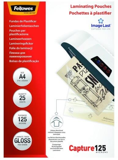 Lamináló fólia FELLOWES A/4 125 mikron fényes 25/csom - 09.00299 - Lamináló fóliák -