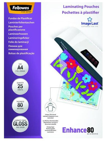 Lamináló fólia FELLOWES A/4 80 mikron fényes 25/csom