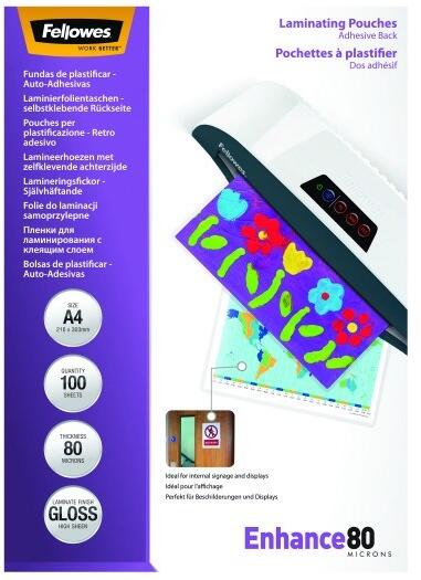 Fellowes Lamináló fólia FELLOWES A/4 80 mikron fényes öntapadó 100/csom (5302202) - vectraline