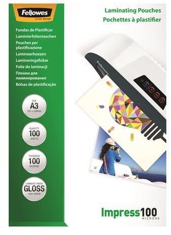 Fellowes Meleglamináló fólia, 100 mikron, A3, fényes, 100 db, FELLOWES (IFW53512) - tintasziget