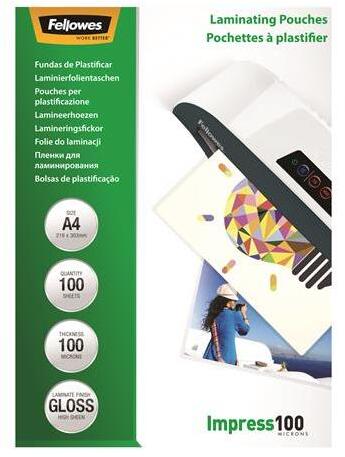 Fellowes Meleglamináló fólia, 100 mikron, A4, fényes, 100 db, FELLOWES (IFW53511) - tintasziget