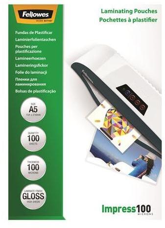 Fellowes Meleglamináló fólia, 100 mikron, A5, fényes, 100 db, FELLOWES (5351002) - tonerpiac