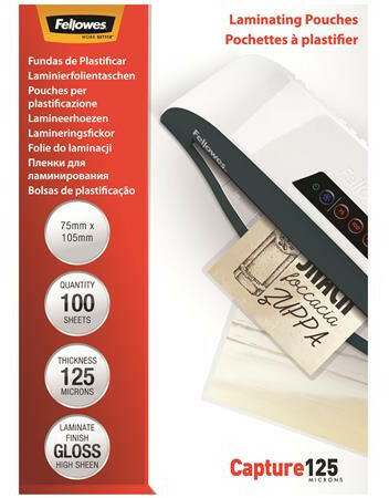 Fellowes Meleglamináló fólia, 125 mikron, 75x105 mm, fényes, 100 db, FELLOWES (5306901) - bestoffice
