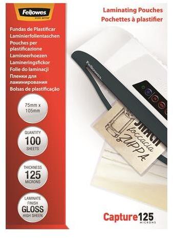 Fellowes Meleglamináló fólia, 125 mikron, 75x105 mm, fényes, 100 db, FELLOWES (IFW53069) - tintasziget