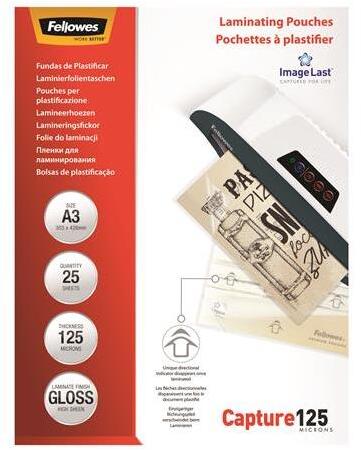 Fellowes Meleglamináló fólia, 125 mikron, A3, fényes, 25 db, FELLOWES (IFW53965) - tintasziget