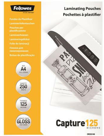 Fellowes Meleglamináló fólia, 125 mikron, A4, fényes, 250 db, FELLOWES (5314903) - bestoffice