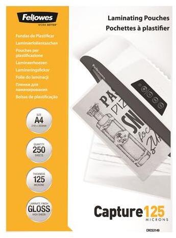 Fellowes Meleglamináló fólia, 125 mikron, A4, fényes, 250 db, FELLOWES (5314903) - mystock