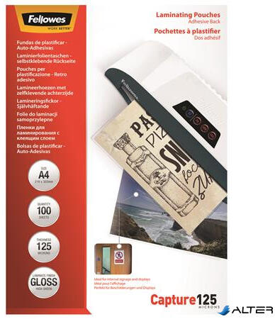 Fellowes Meleglamináló fólia, 125 mikron, A4, fényes, öntapadó, 100 db, FELLOWES (5328901) - alter