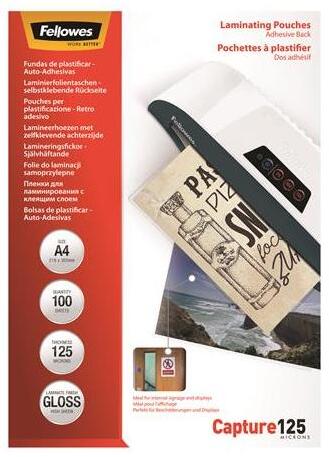 Fellowes Meleglamináló fólia, 125 mikron, A4, fényes, öntapadó, 100 db, FELLOWES (5328901) - tonerpiac