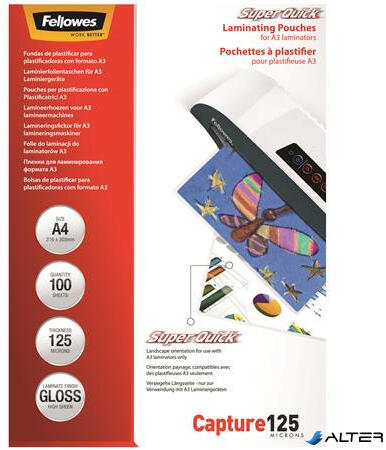 Fellowes Meleglamináló fólia, 125 mikron, A4, SuperQuick, fényes, 100 db, FELLOWES (5440101) - alter