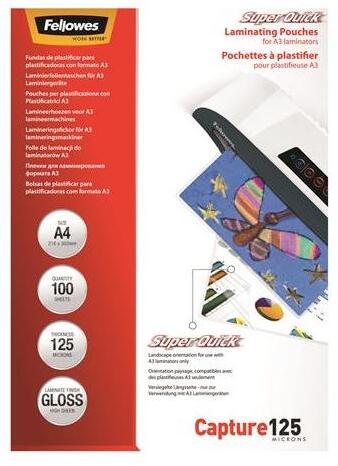 Fellowes Meleglamináló fólia, 125 mikron, A4, SuperQuick, fényes, 100 db, FELLOWES (5440101) - tonerpiac