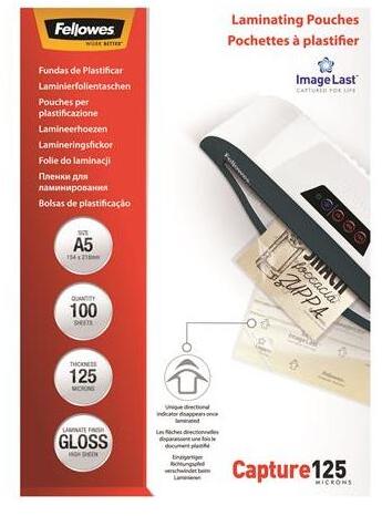 Fellowes Meleglamináló fólia, 125 mikron, A5, fényes, 100 db, FELLOWES (5307302) - iconink