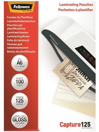 Fellowes Meleglamináló fólia, 125 mikron, A6, fényes, 100 db, FELLOWES (100 db) (IFW53072)