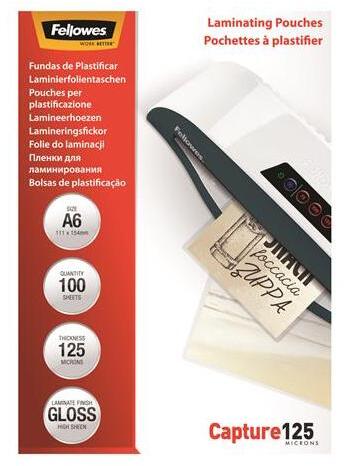 Fellowes Meleglamináló fólia, 125 mikron, A6, fényes, 100 db, FELLOWES (5307201) - mystock