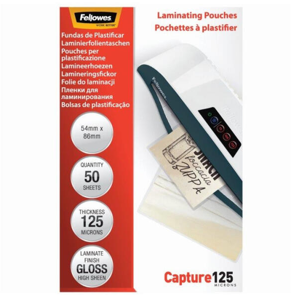 Fellowes meleglamináló fólia, 54x86 mm, 125 mikron, 50 db (5396602)