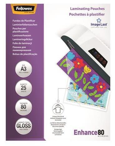 Fellowes Meleglamináló fólia, 80 mikron, A3, fényes, 25 db, FELLOWES (5396403) - mystock