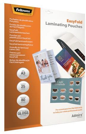 Fellowes Meleglamináló fólia, 80 mikron, A3, fényes, előrehajtott, 25 db, FELLOWES Admire Easyfold (5602001)