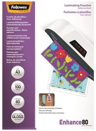 Fellowes Meleglamináló fólia, 80 mikron, A3, fényes, öntapadó, 100 db, FELLOWES (5302302)