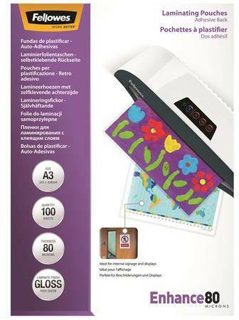 Fellowes Meleglamináló fólia, 80 mikron, A3, fényes, öntapadó, 100 db, FELLOWES (IFW53023) - fapadospatron