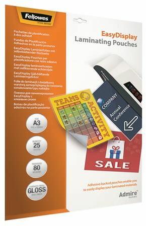 Fellowes Meleglamináló fólia, 80 mikron, A3, fényes, öntapadó, 25 db, FELLOWES "Admire Easy Display" (25 db) (IFW56018)
