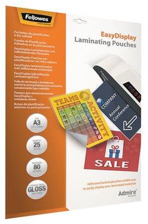 Fellowes Meleglamináló fólia, 80 mikron, A3, fényes, öntapadó, 25 db, FELLOWES "Admire Easy Display (IFW56018) - tintasziget
