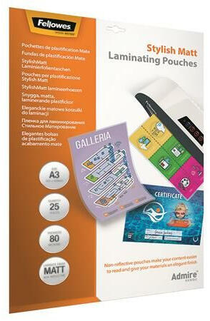 Fellowes Meleglamináló fólia, 80 mikron, A3, matt, 25 db, FELLOWES, Admire Stylish (IFW56022) (5602201)