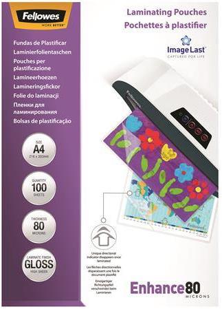 Meleglamináló fólia, 80 mikron, A4, fényes, 100 db, FELLOWES (IFW53061)