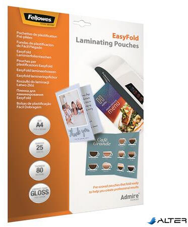 Fellowes Meleglamináló fólia, 80 mikron, A4, fényes, 25 db, FELLOWES "Admire Easyfold (5601901) - alter
