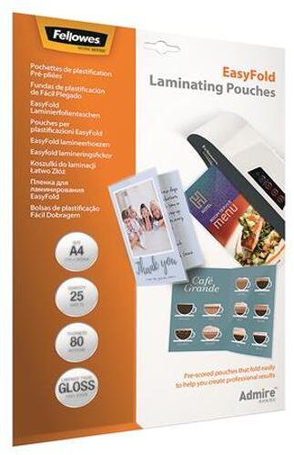 Fellowes Meleglamináló fólia, 80 mikron, A4, fényes, 25 db, FELLOWES "Admire Easyfold (IFW56019) - jatekotthon